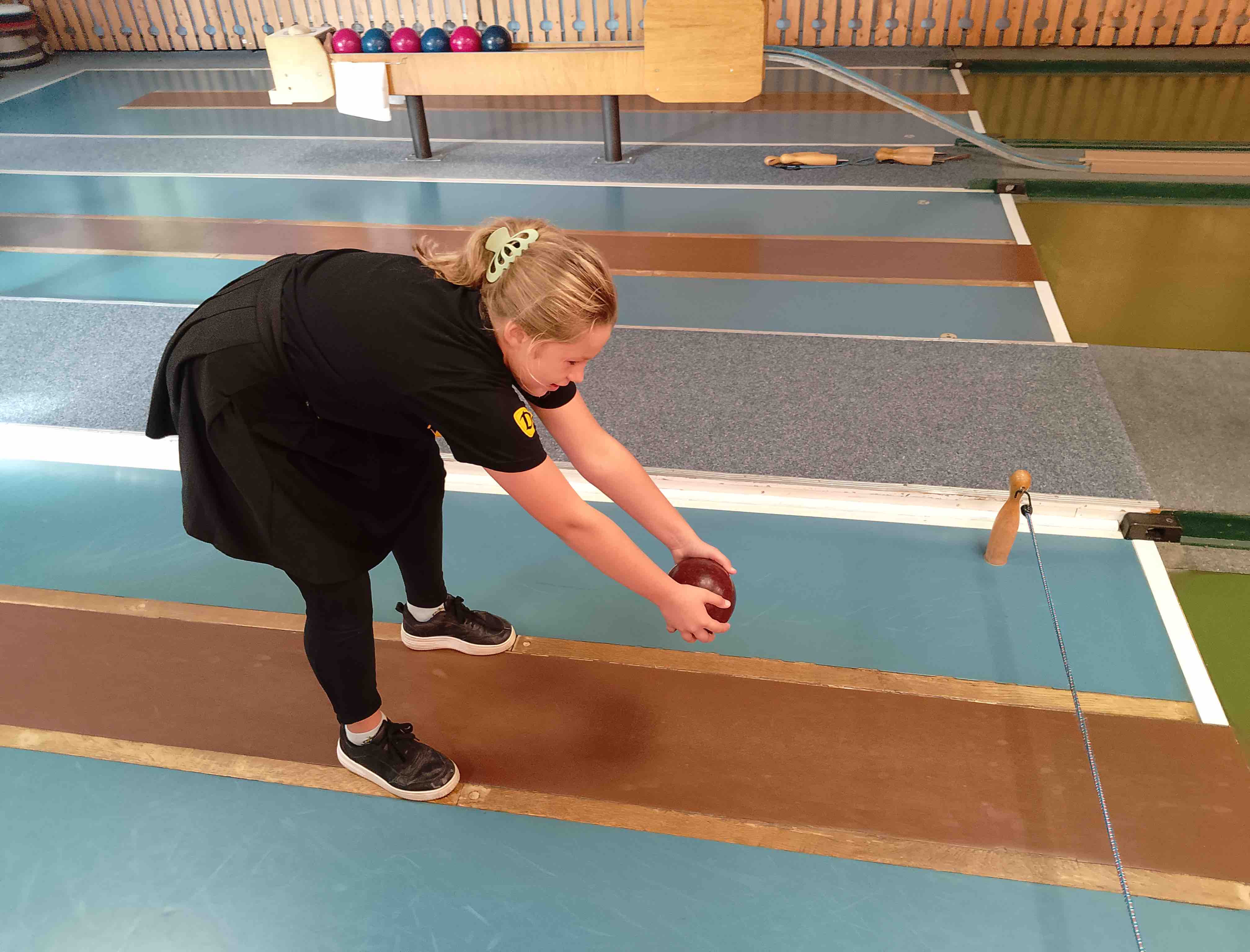 Also haben wir wieder einmal gemeinsam viele Kugeln ins Rollen gebracht. Wir durften zwei Bahnen nutzen und wurden zuvor eingewiesen, welche Kugeln für wen geeignet sind, wie man die Kugeln richtig hält, und was beim zielgenauen Kegeln zu beachten ist.