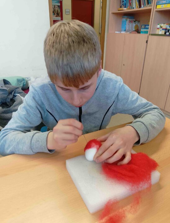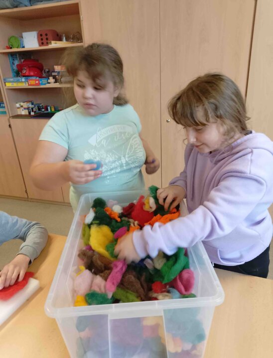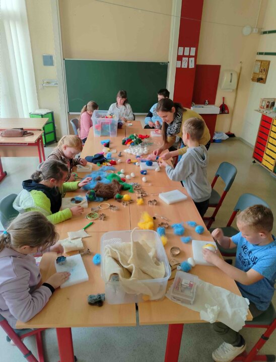 Katerina Nemcova aus dem Laden "Puppala" in Kamenz kam zu uns in den Hort und lehrte uns das Trockenfilzen.
