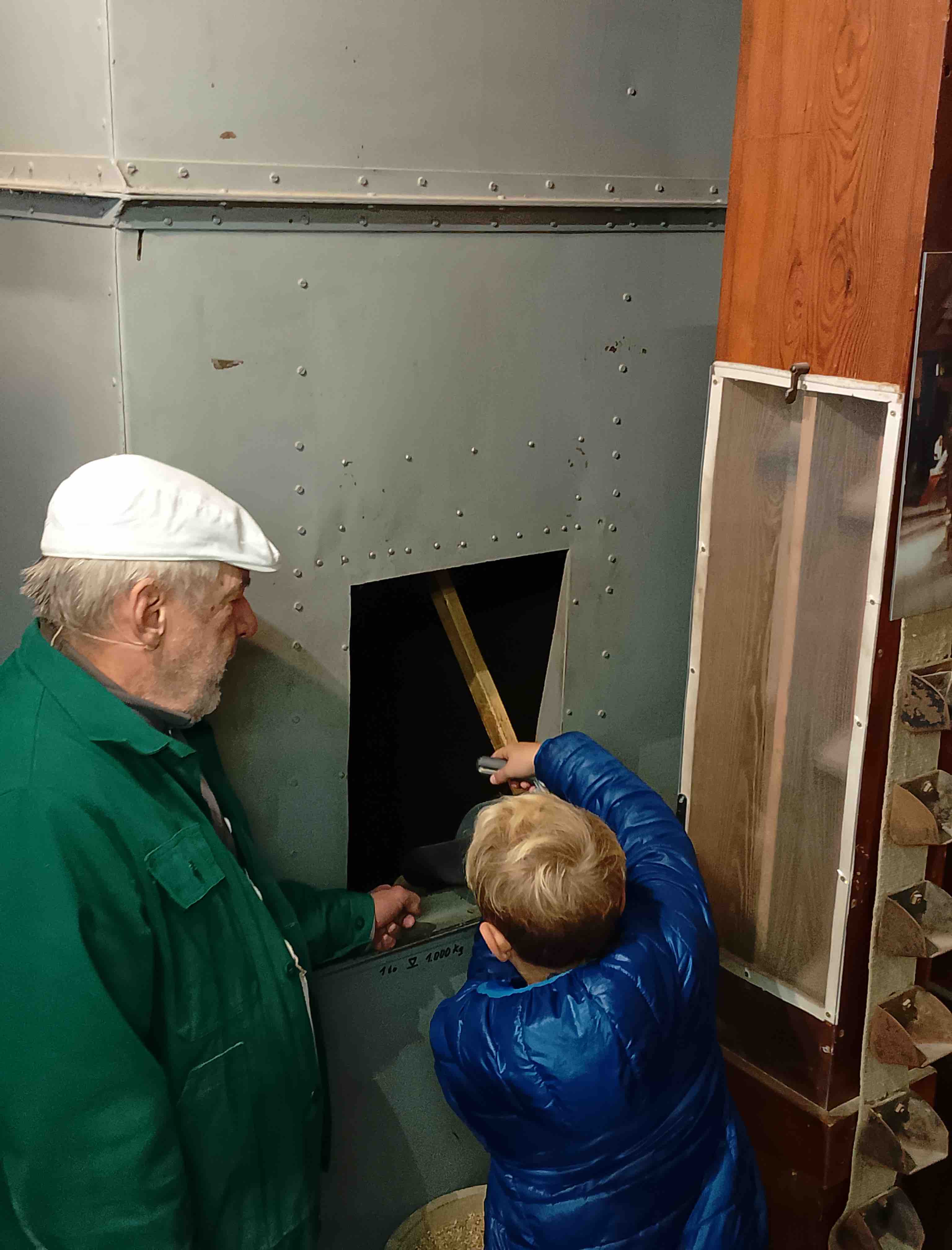 Wir erlebten, wie die Mühle auf drei Etagen funktioniert, wir konnten die Maschinen aus der Nähe sehen, zB. FRANCIS-Spiralturbine, die die Mühle antreibt, sowie die alten Walzenstühle, die seit über 100 Jahren im Einsatz sind.