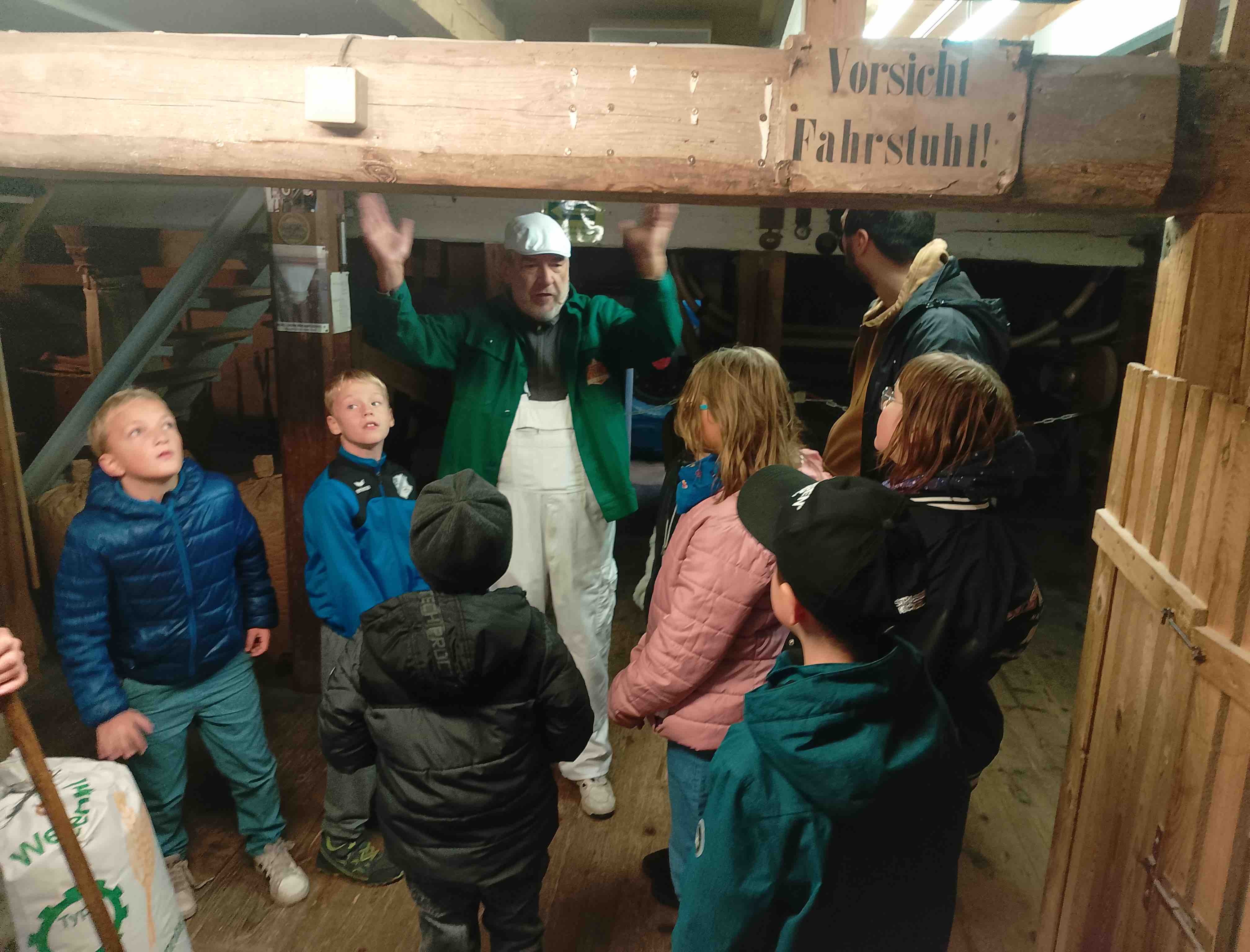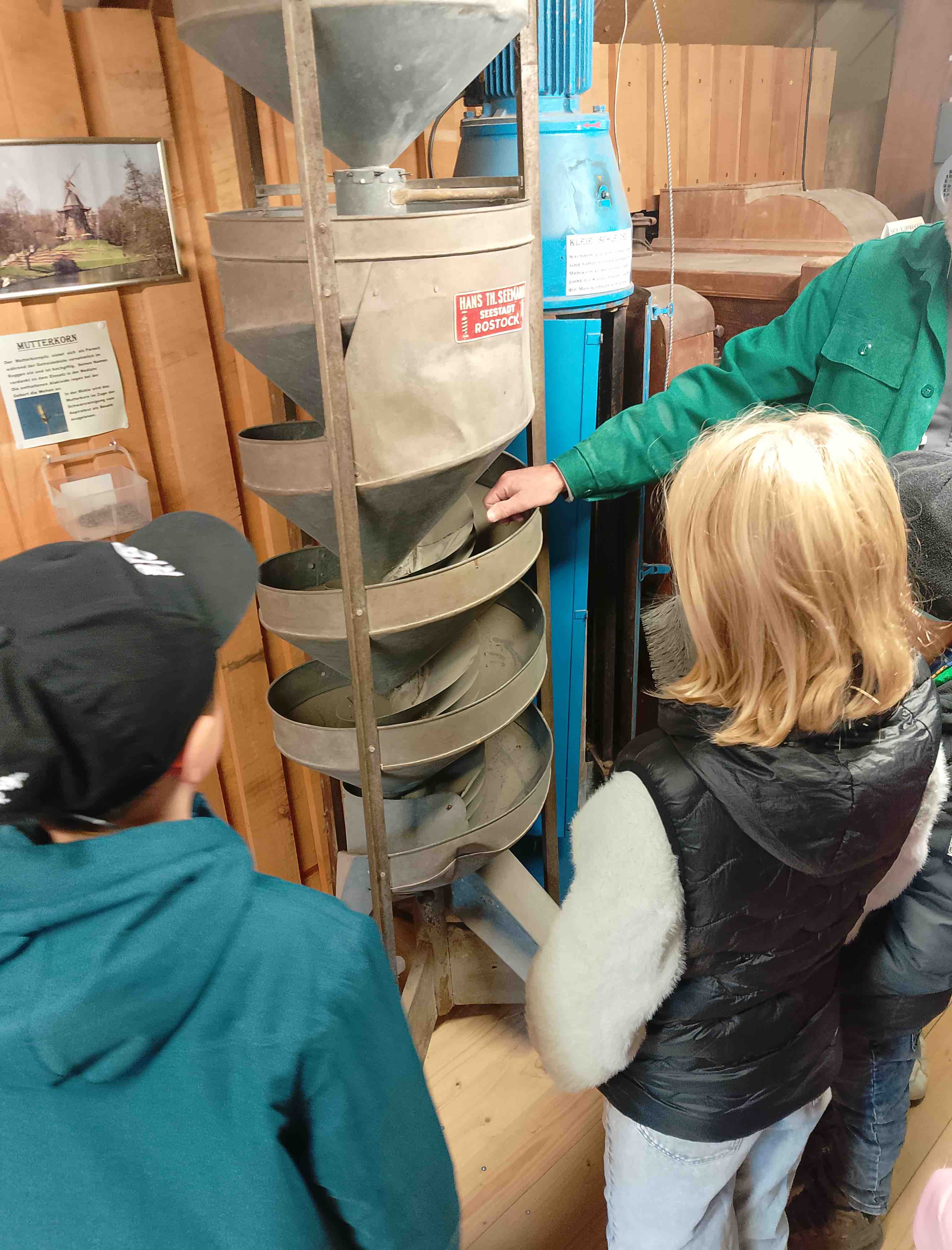 Besonders spannend war für die Kinder, den Weg des Getreides vom Korn bis zum fertigen Mehl zu verfolgen. War das anstrengend früher! Am Ende der Führung gab es sogar eine kleine Erinnerung in Form von Mühlen-Mehl, aus dem wir gemeinsam mit den Kindern im Hort ein Brot gebacken haben.