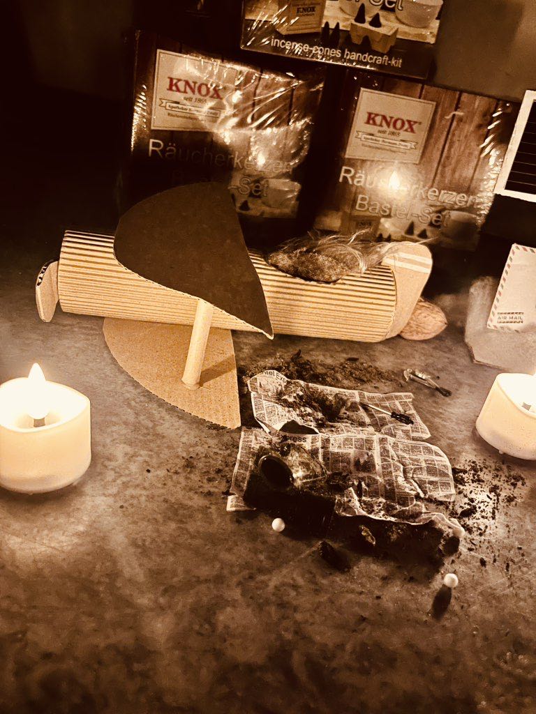 Weil seine Reise-Zündkerzen so wichtig sind, brachte Jeppe den Kindern ein Kreativangebot mit: ein Set, mit dem sie gemeinsam eigene kleine Wichtel-Räucherkerzen herstellen können. Diese Kerzen dienen künftig als Ersatz für sein Flugzeug – und vielleicht auch als kleine Erinnerung für die Kinder selbst.
