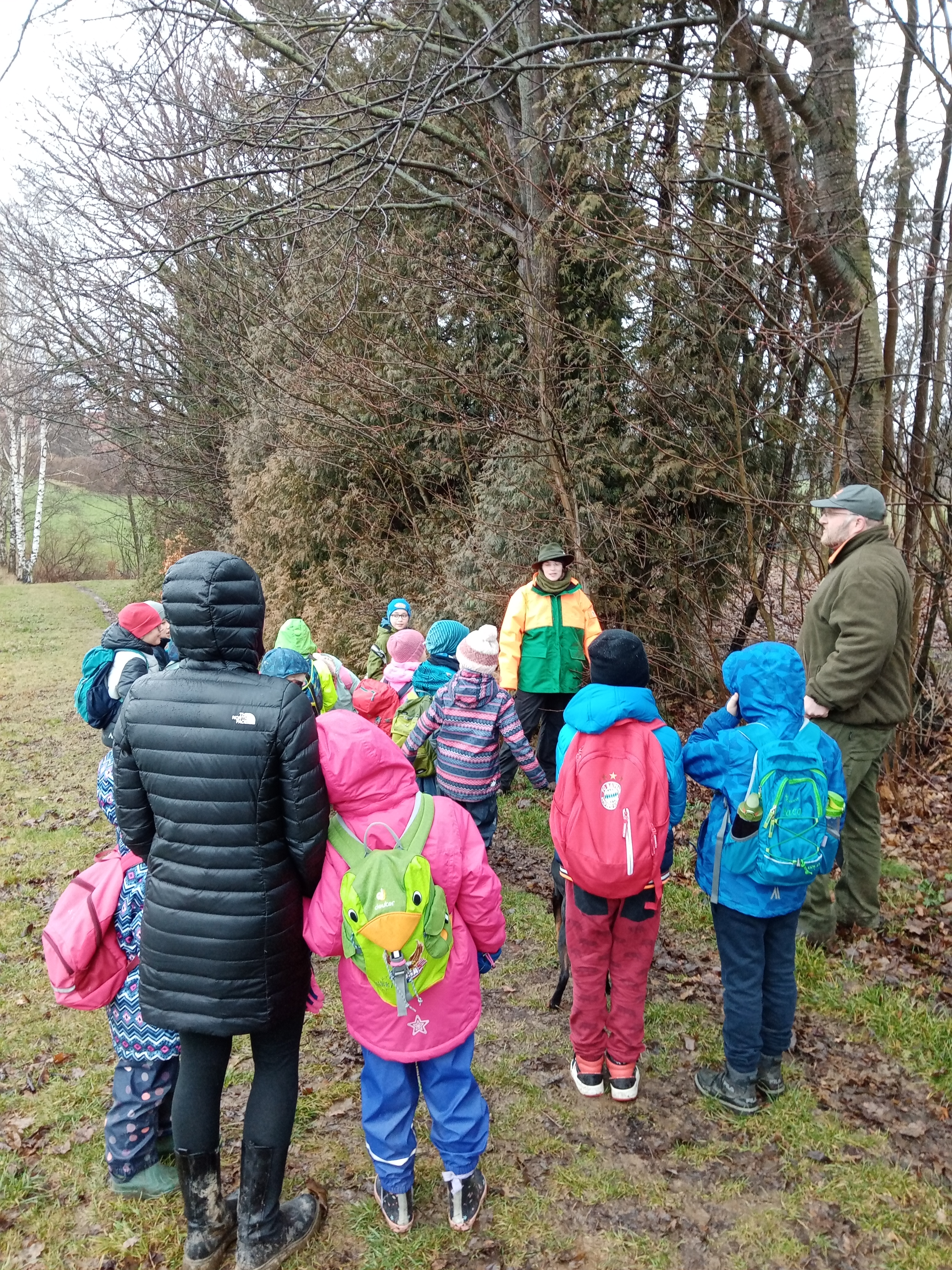 Am letzten Ferientag ging es für alle raus in die Natur. Bedauerlicherweise meinte es der Wettergott nicht gut mit uns, sodass die Motivation am Anfang eher verhalten ausfiel. Doch davon ließen wir uns nicht unterkriegen, ganz nach dem Motto: Es gibt kein schlechtes Wetter, nur schlechte Kleidung.