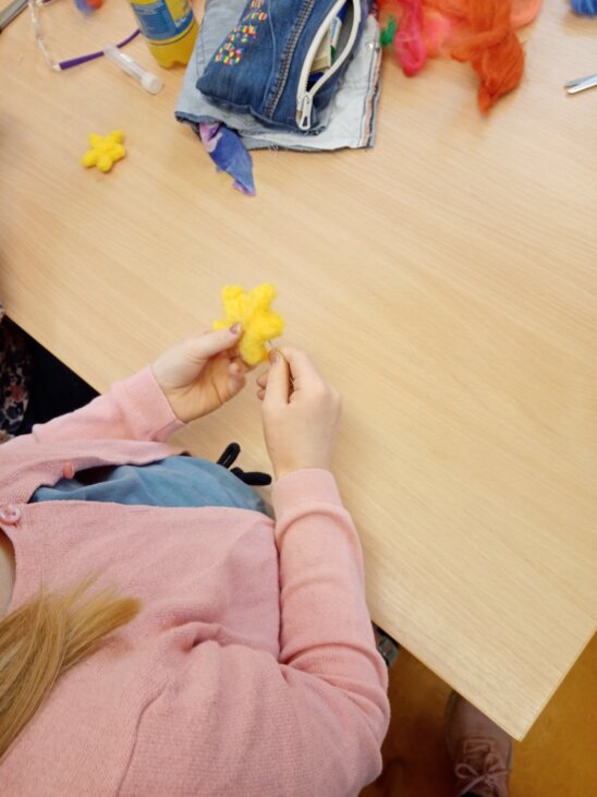 Aber an diesem Tag entstand noch viel mehr: Wir nähten gemeinsam schöne Taschen aus alten Jeans genäht und haben tolle Figuren aus Filz kreiert.
