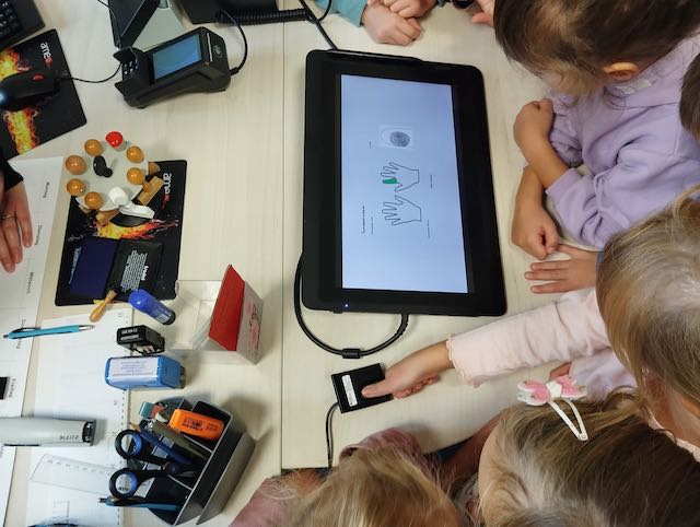 Dann waren wir im Einwohnermeldeamt: Wer in Großröhrsdorf wohnt, muss sich hier anmelden. Zum Spaß durften wir sogar unsre Fingerabdrücke scannen; das war lustig.
