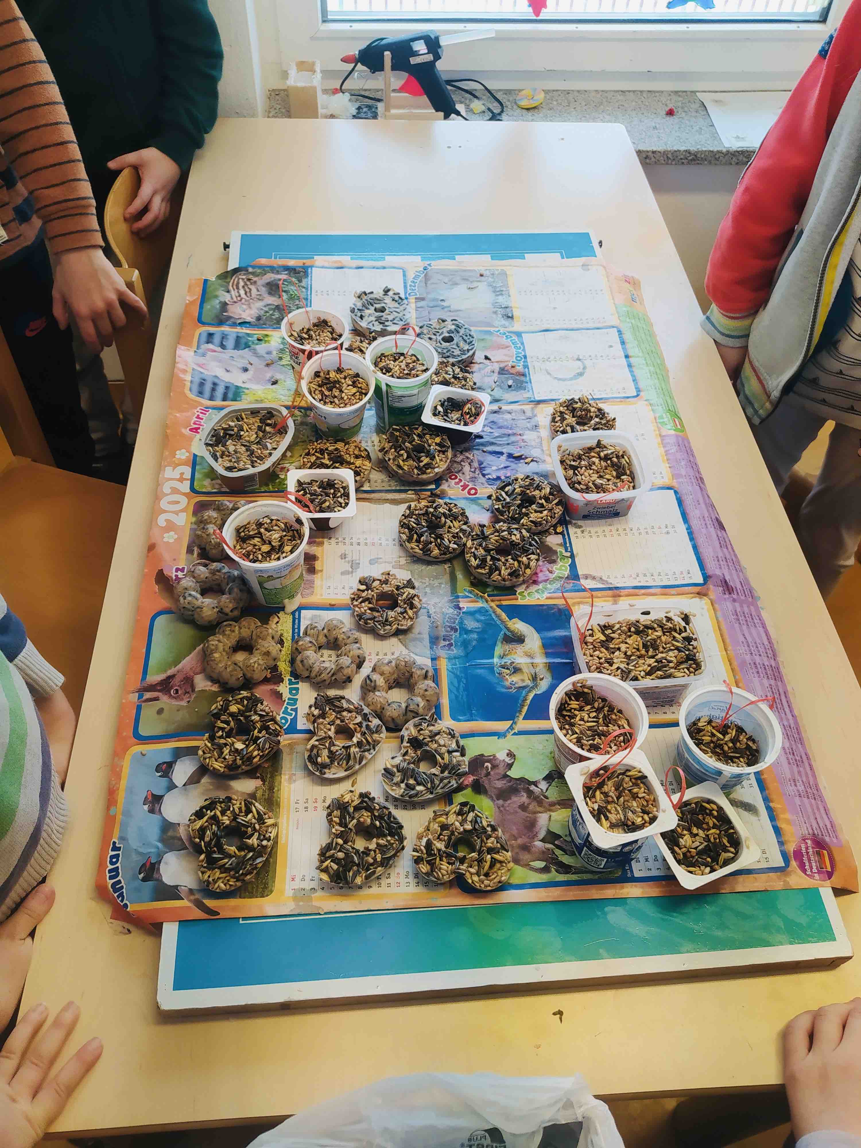 So haben wir uns intensiv damit beschäftigt und das Futter eifrig selbst gemischt und zu Portionen verfestigt. Viel Spaß gab es auch beim Aufhängen, denn das sollte hoch genug sein, damit Katzen kein leichtes Spiel haben.