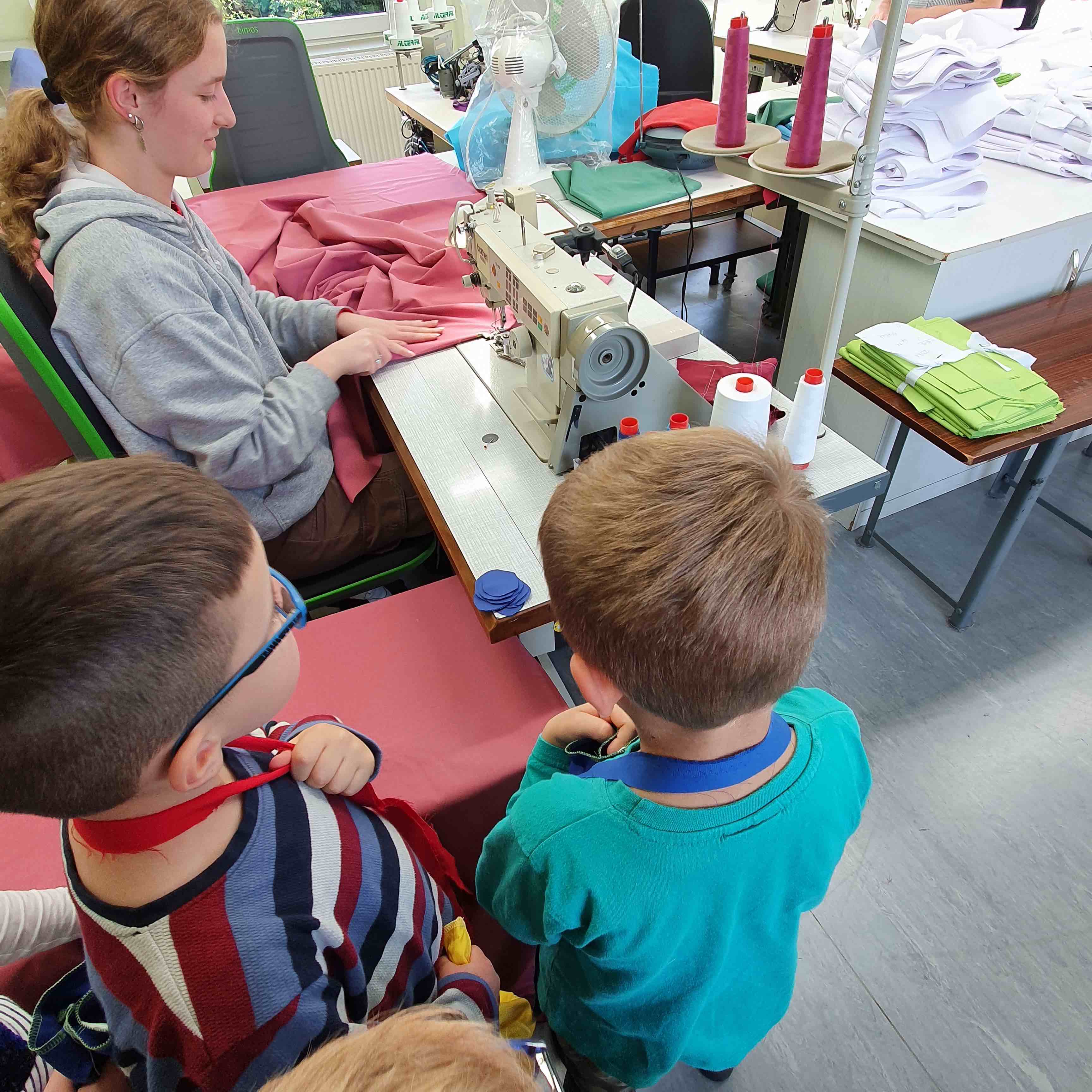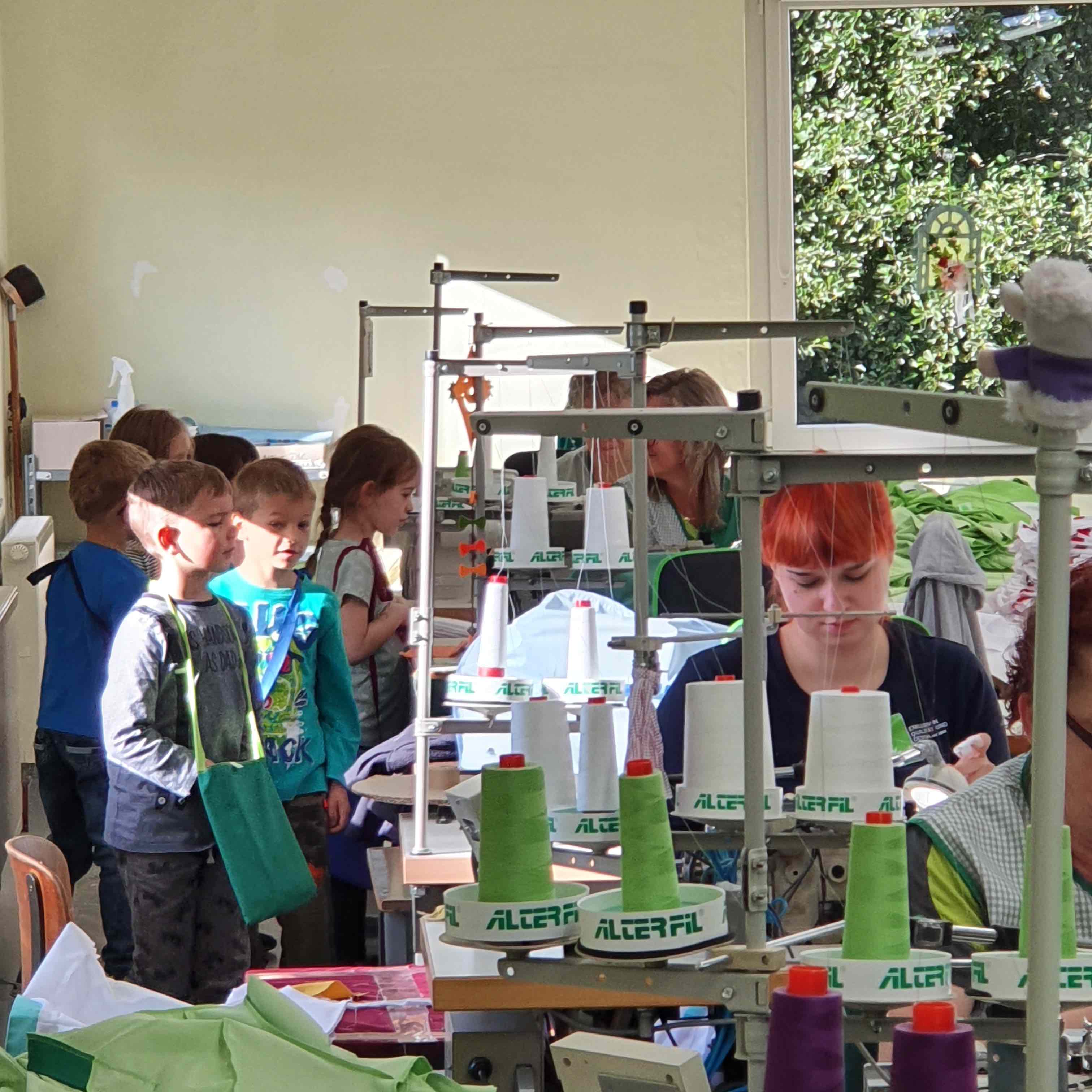 Wir staunten ganz schön: Dass es so viele Berufe in dieser Firma gibt, hätten wir nicht gedacht. Und wir konnten alte und moderne Nähmaschinen vergleichen. Wie mühsam das früher war! Wir haben Glück, in heutiger Zeit zu leben, wo Arbeit so viel leichter ist. Für uns war jeder Arbeitsschritt spannend und zudem noch mit einer kleinen Überraschung verbunden.