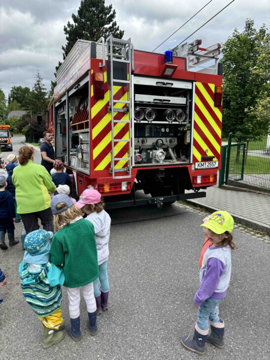 War das spannend! Alle Kinder durften die Feuerwehr von außen und von innen begutachten. Die Männer erklärten den Kindern alles geduldig; keine Frage blieb offen.