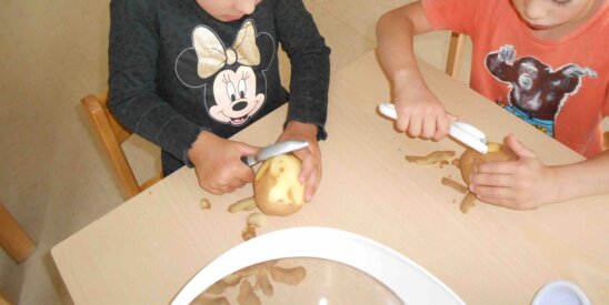 - In einem Spiel für die Sinneswahrnehmung ging es um das Erkennen von Kartoffeln durch Ertasten.