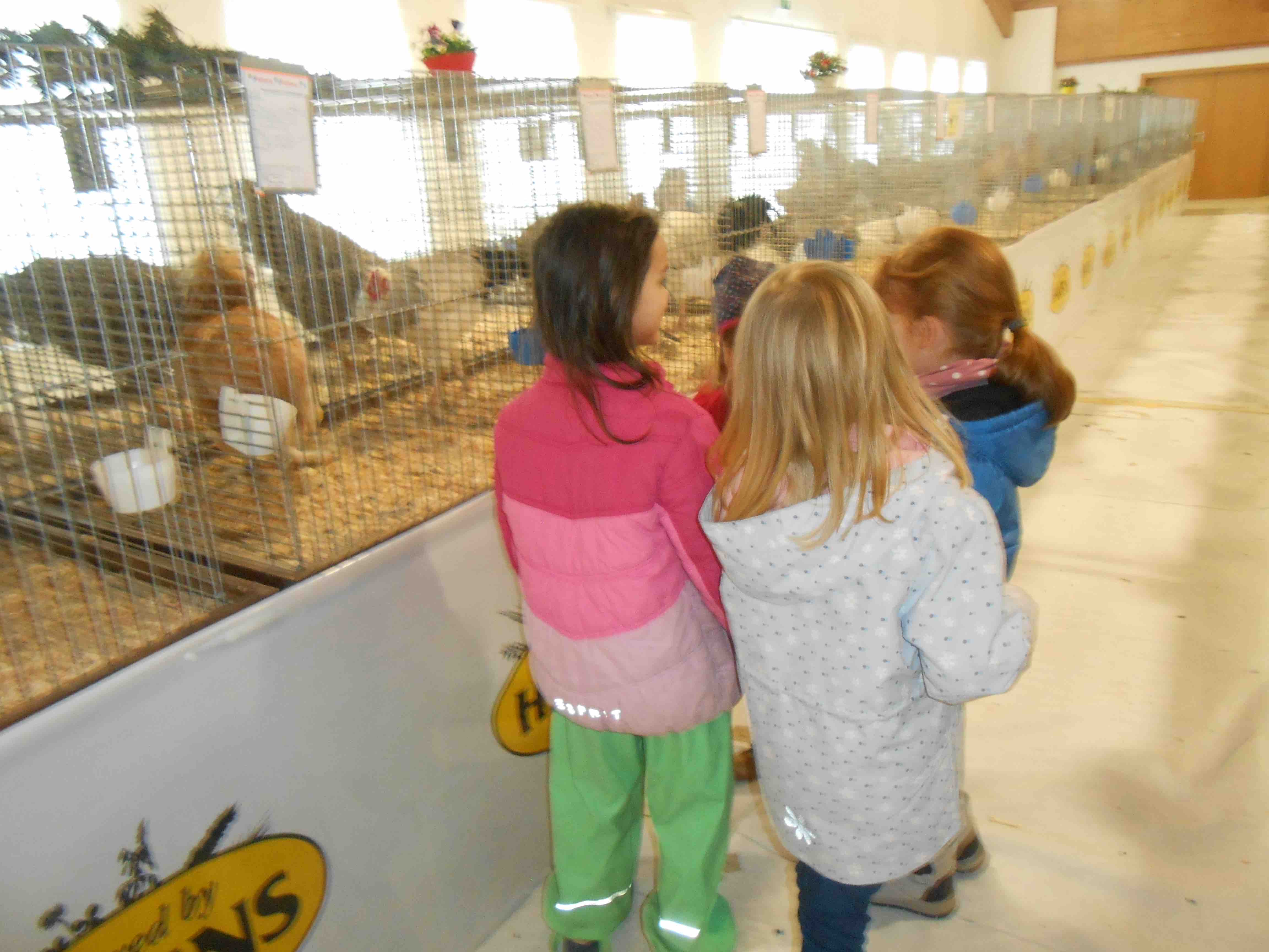 Einmal Gänse, Hühner, Enten, Tauben ganz aus der Nähe sehen - das war schon spannend, denn nicht jeder hält sie zu Hause. So viele Rassen! Und die Gänse waren schon beeindruckend groß. Sonst leben die Tiere nicht im Käfig, sondern sind im Stall oder sogar frei im Gehege draußen.