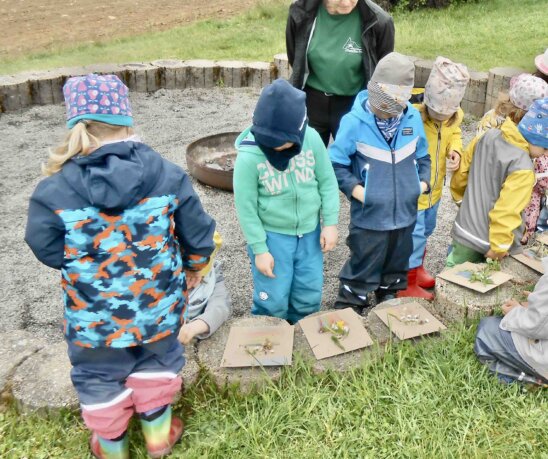 Wir haben auch Wahrnehmungsspiele gemacht und alle Sinne eingesetzt: sehen, hören, riechen, schmecken ... Und schön sahen unsere Sammlungen auch noch aus!