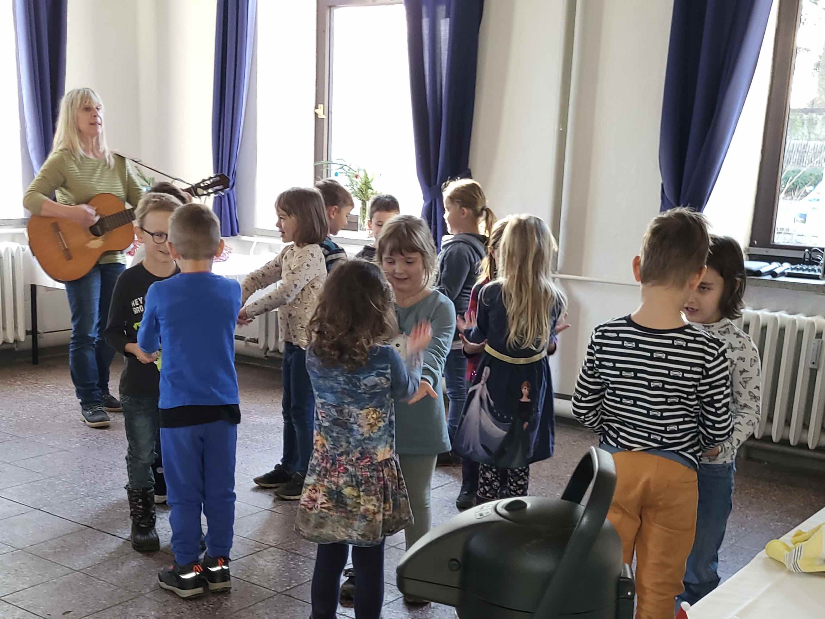 Natürlich haben wir etwas mitgebracht: Einige Gedichte und Weihnachtslieder wurden von den Kindern vorgetragen bzw. gesungen. Und mit dem Lied „Brüderchen, komm tanz mit mir“ wurde die ältere von der jüngeren Generation zum Tanzen aufgefordert. Nach anfänglichem Zögern tanzten alle ganz beschwingt mit den Kindern mit und erfreuten sich der Gitarrenklänge, die das Lied begleiteten. Da wurde dann nach "Zugabe" gerufen, und die kam in Form von Weihnachtsliedern. Hier trafen sich Jung und Alt im gemeinsamen Gesang. Zum Schluss freuten sich die Kinder noch über eine Tüte Gummibärchen, die sie vom Ortsvorsteher, Herrn Marz, geschenkt bekamen.