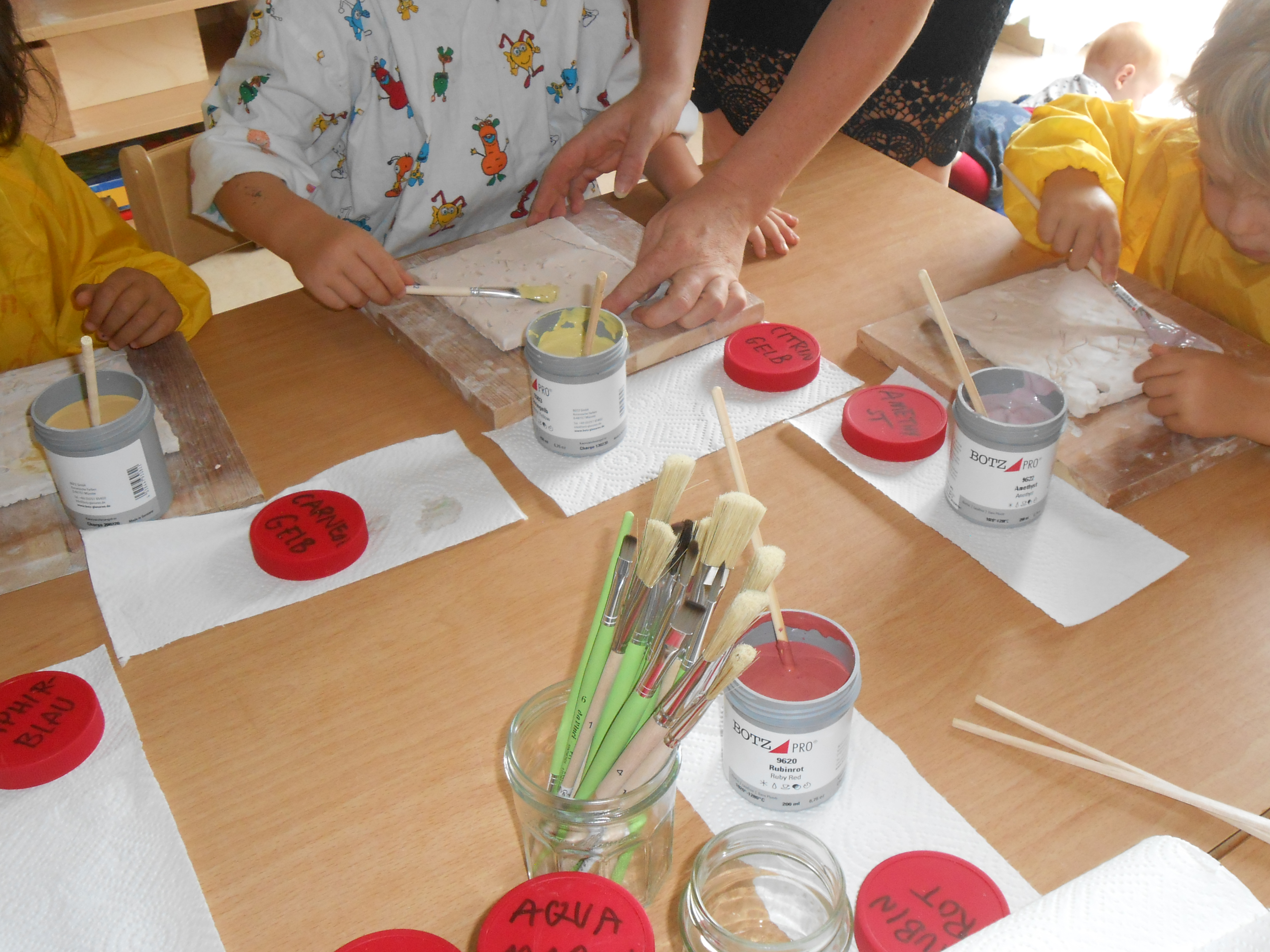 Bei unserem Tonprojekt beteiligen wir so viele Kinder wie möglich. Die Tonkacheln sollen unsere Kita schmücken, sie etwas kreativer aussehen lassen. Dass sie dabei auch neue Techniken lernen, geschieht quasi nebenbei. Vor allem aber sollen die Kinder erleben, dass sie ihre Kita mitgestalten können und vielleicht nach Jahren bei einem Besuch in der Kita ihre Kachel wiederfinden.