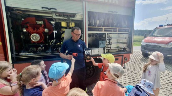 Wir machten eine kleine Rundfahrt durch die Heimat und durften uns einmal alles ansehen. Die Feuerwehrleute erklärten uns alles ausführlich und kindgerecht.