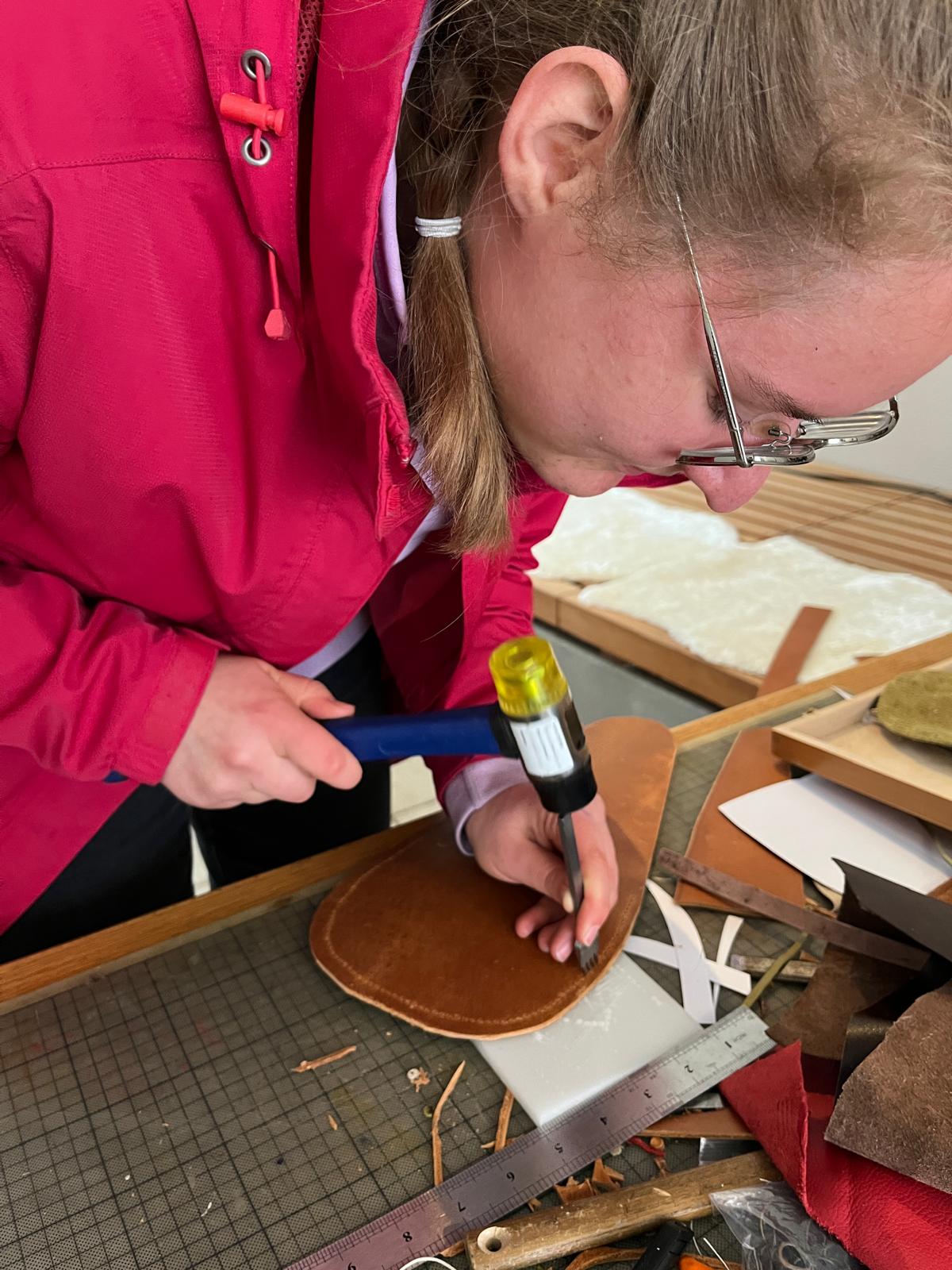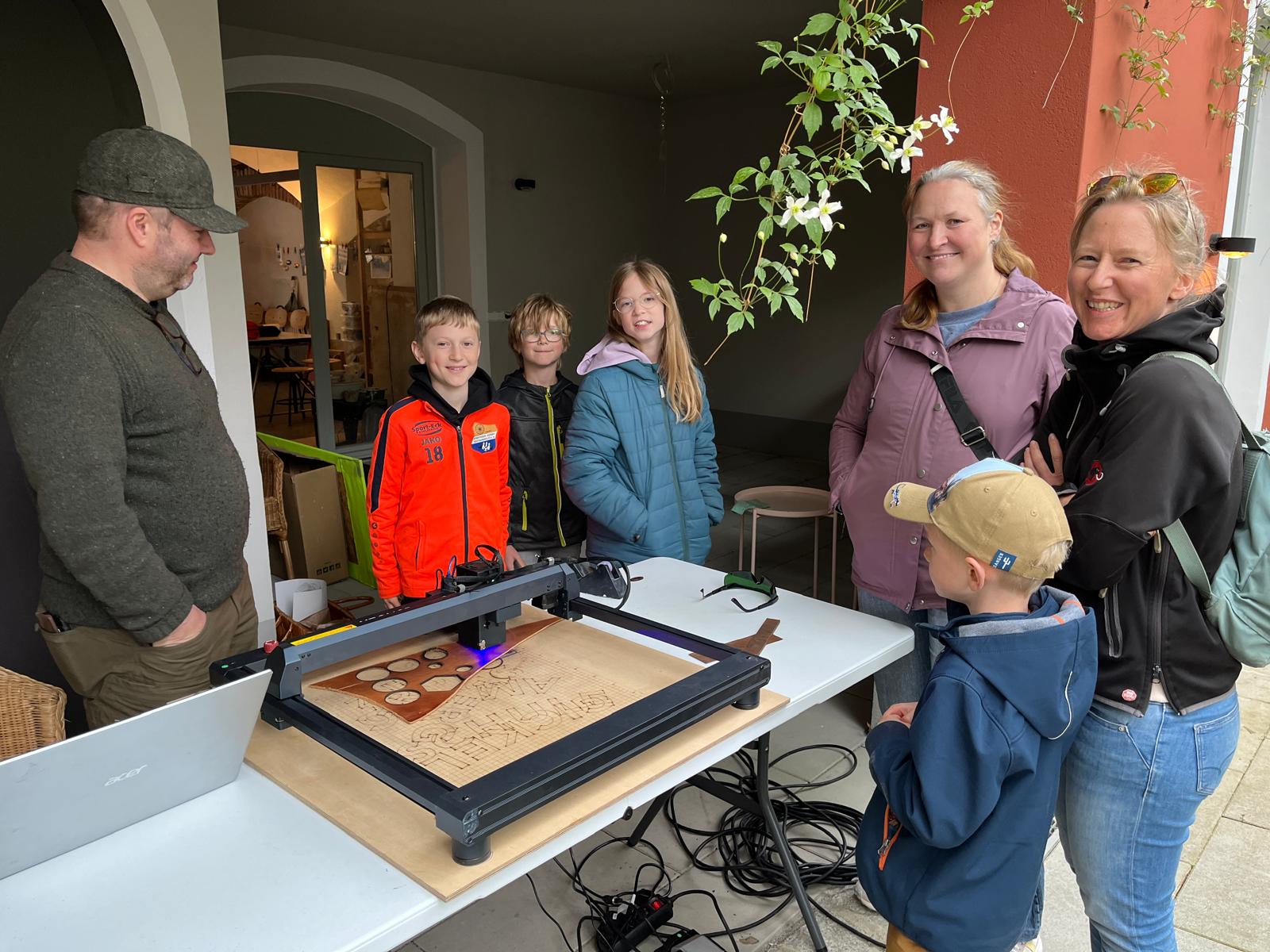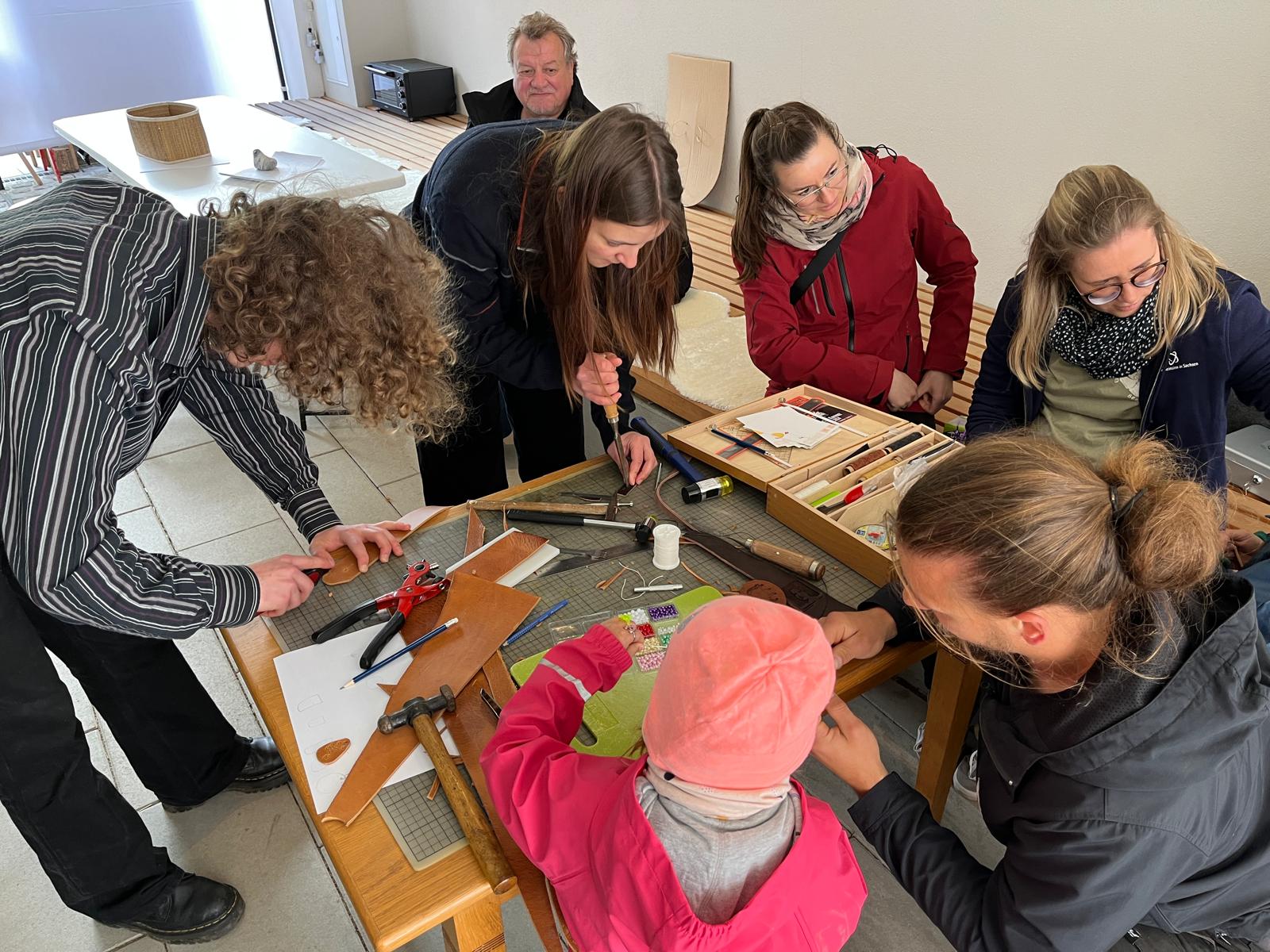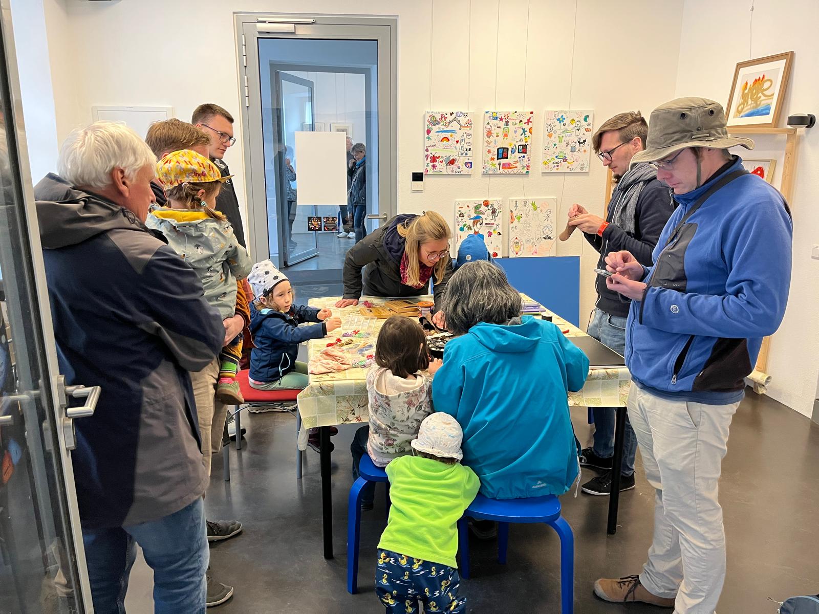 Viele kleine und große Besucherinnen und Besucher strömten in unseren Hof, in dem Martina Burghart-Vollhardt eine kleine Mitmach-Lederwerkstatt anbot. Jeder konnte sich sein Lieblingsleder aussuchen und ein Täschchen, Mäppchen oder Büchlein etc. herstellen. Man trug kleine Wunderwerke mit nach Hause ...